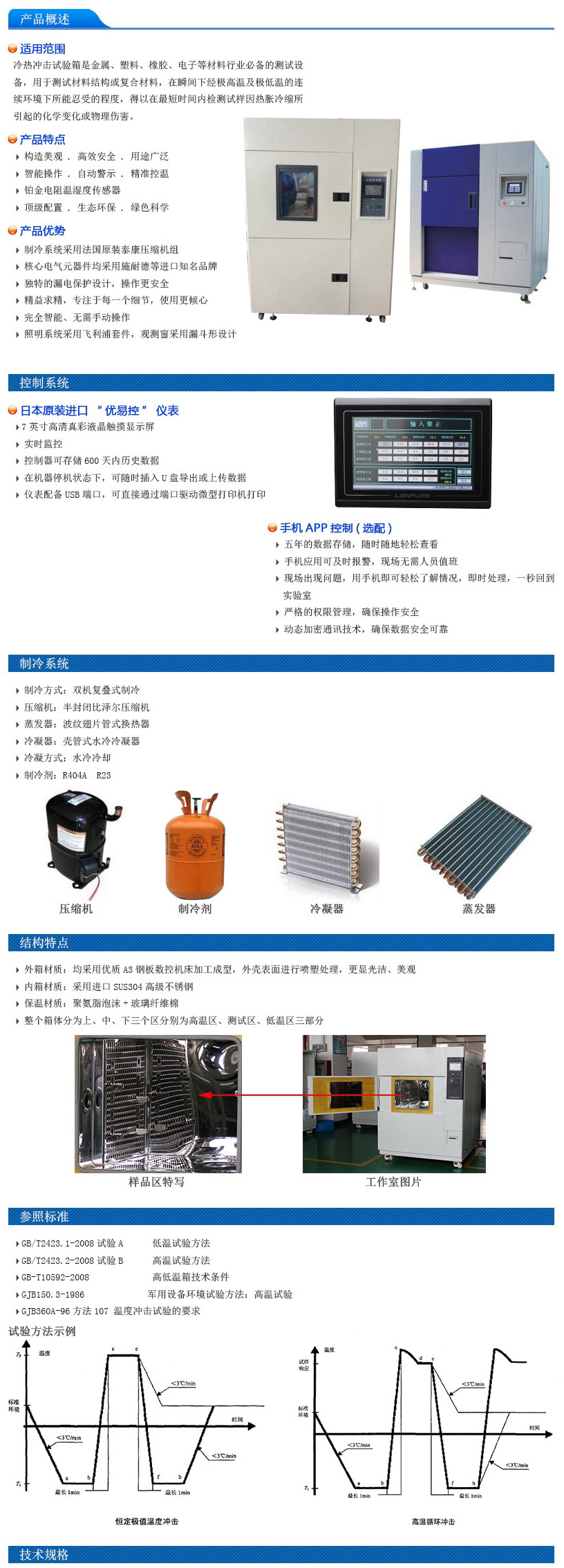 本類試驗箱符合國家標準GB10589《低溫試驗箱技術條件》和GB11158《高溫試驗箱技術條件》,具體設備參數以技術協議為準。極寬的溫度控制范圍,可滿足GB/T2423《電工電子產品基本試驗規程》1、2、3、4項的試驗要求。獨特的平恒調溫控制,可進行高精度,高穩定的溫度控制。嵌入式計算機系統,可選配485通訊接口,便于遠距離控制和中央集中控制。可記錄90天的試驗數據(相當于配備無紙記錄儀)。